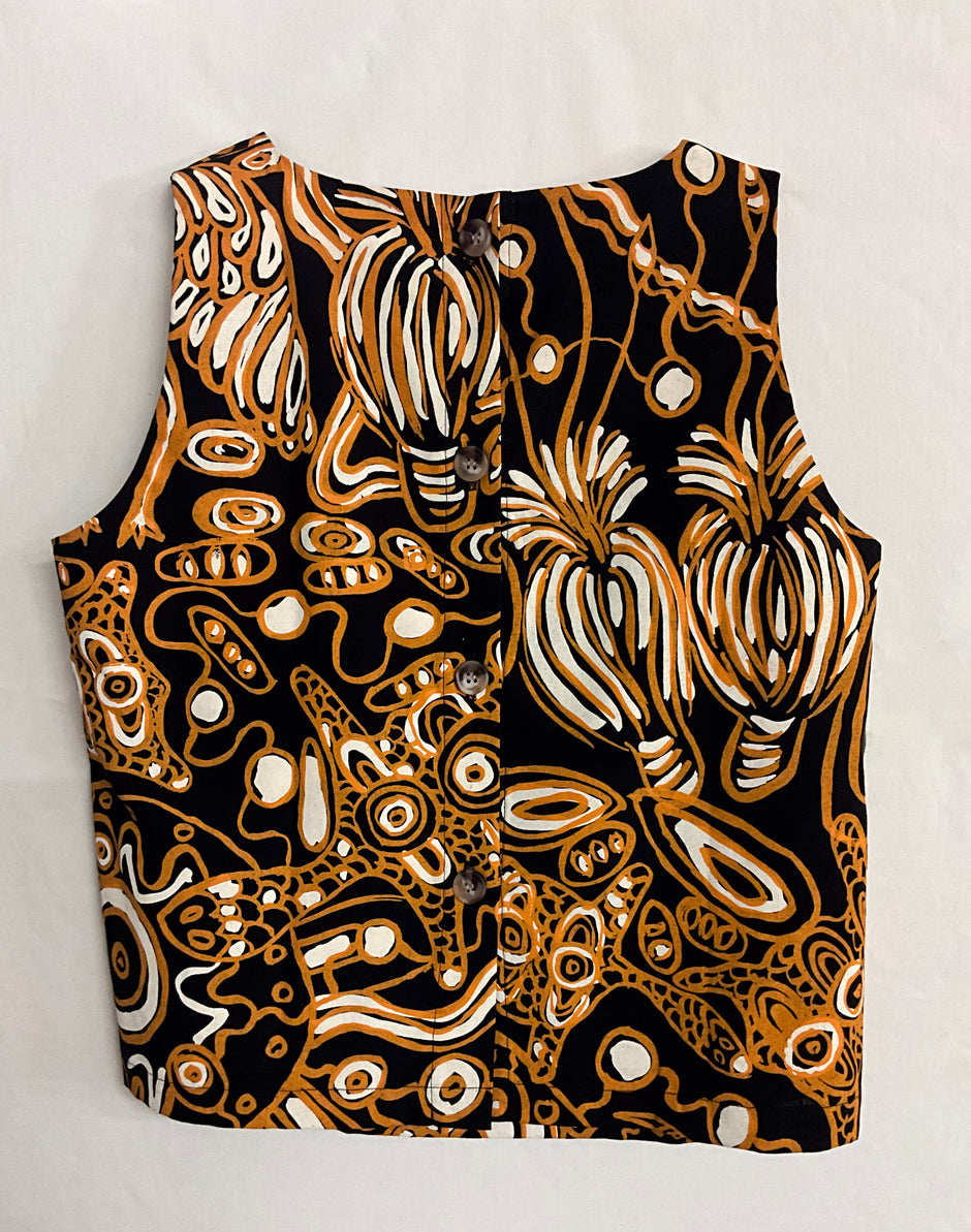 Beautiful colourful handprinted textiles and paper prints, soap, candles, tee shirts and earings. The colours and prints represent the feeling of country and dreaming. Very inspiring. Well done Nagula Jarndu ( Saltwater woman)