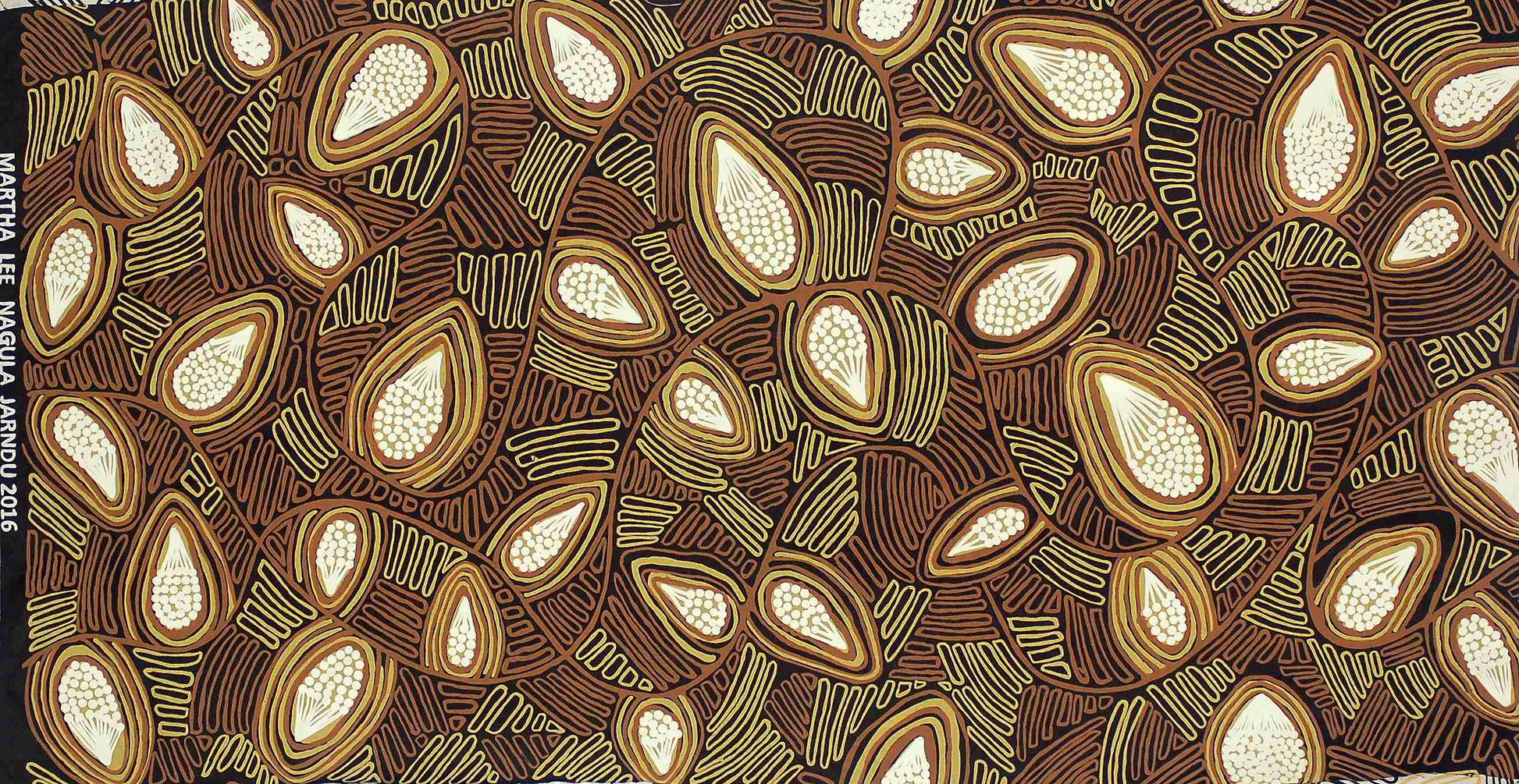 Martha Lee is a Yawuru and Karajarri woman from Broome. She began her art career in 2005 and is one of Nagula Jarndu’s more senior artists. Her art has a strong sense of pattern and colour inspired by the Kimberley landscape and traditional stories.