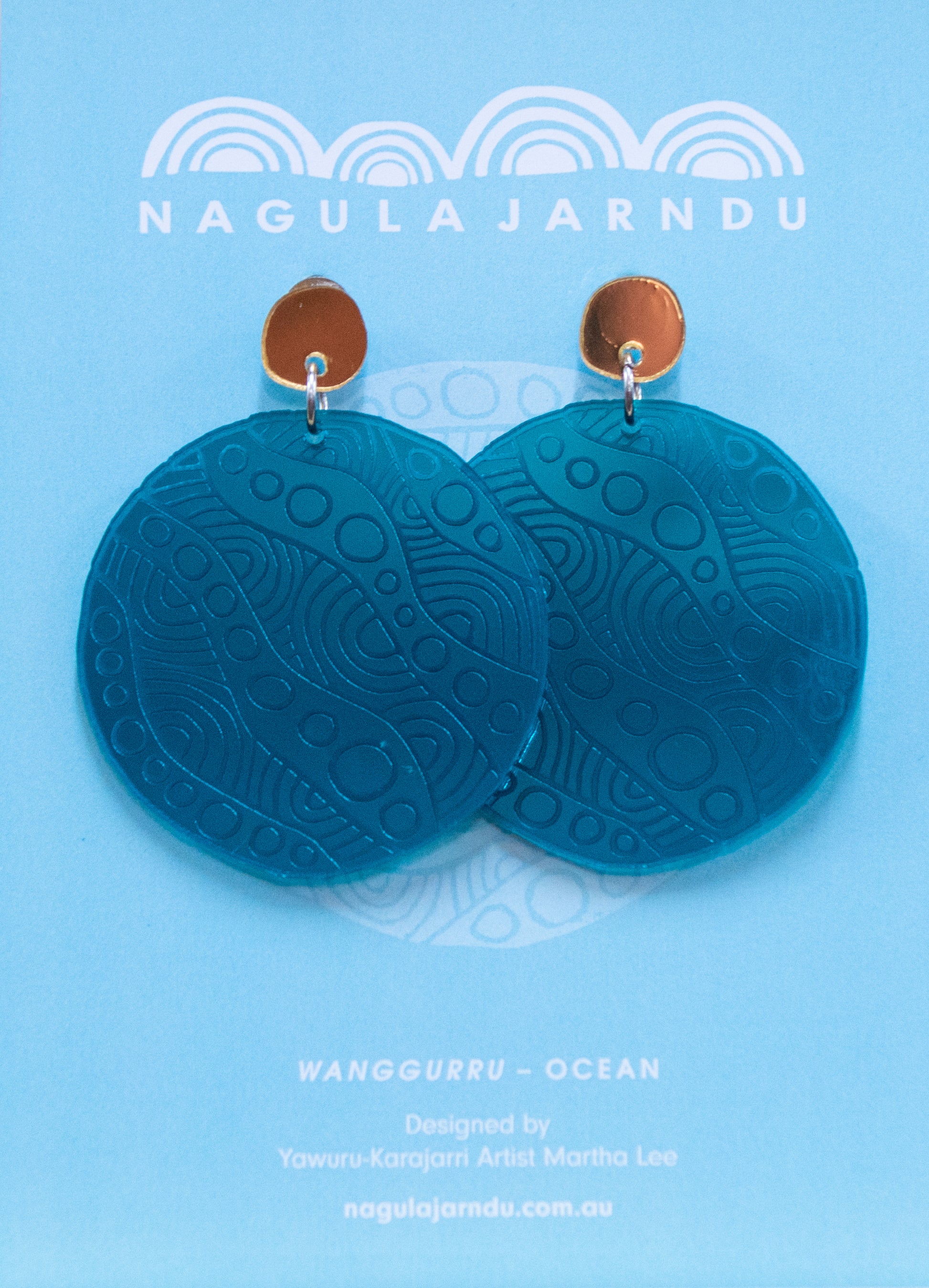 A choice of 2 to select - i )a stunning teal mirror acrylic with a pale-gold mirror circle or ii) 2 tone acrylic with a silver top. Both with stainless-steel post.