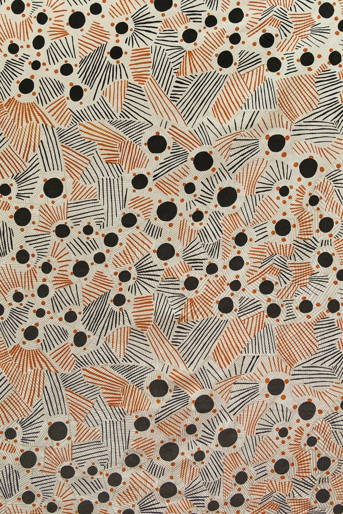 The base fabric is 'natural' colour and it is a three-colour print with orange, black and white details.
