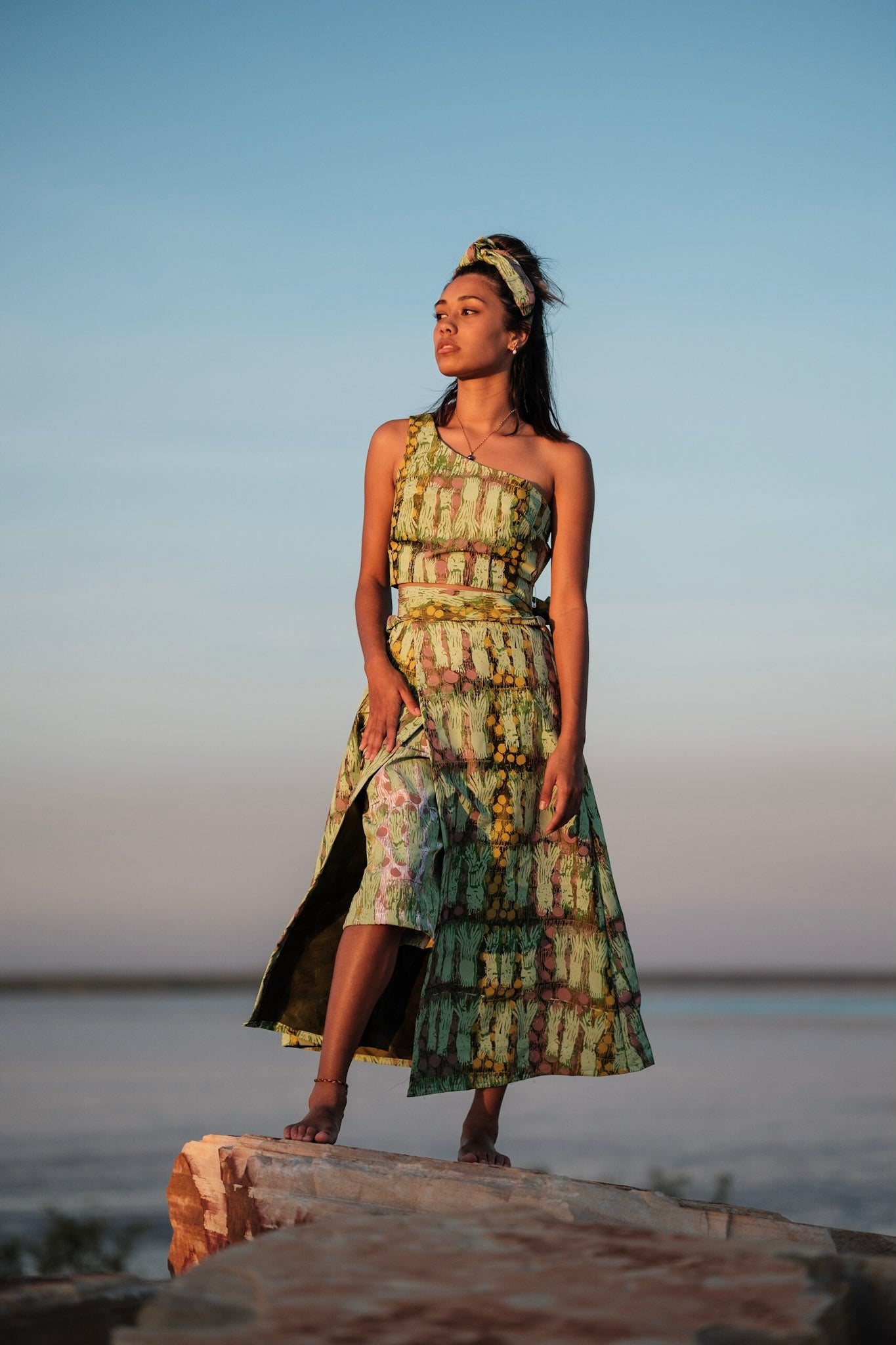 Lengths of handprinted screen printed fabric on 100% silk 135cm wide