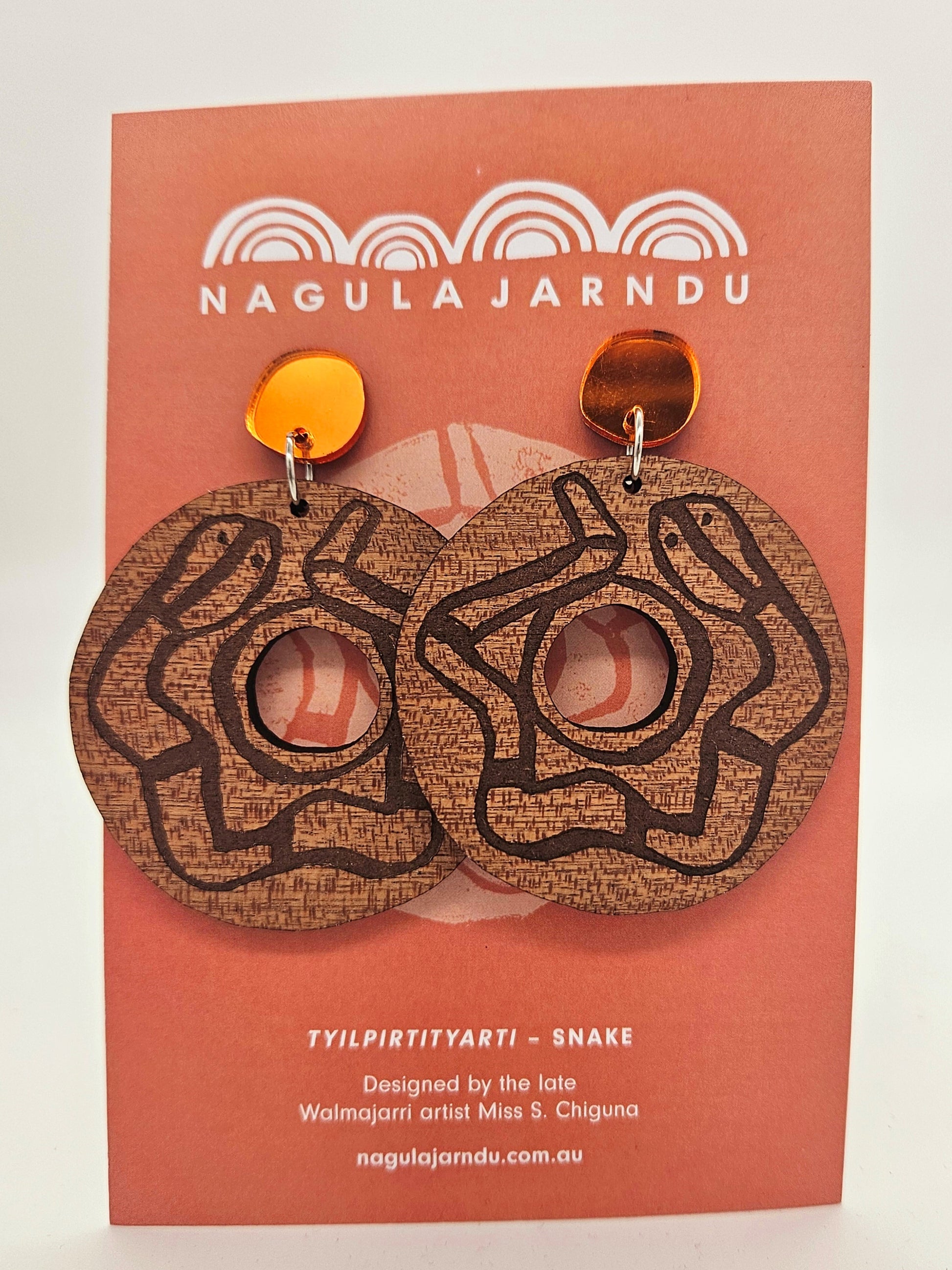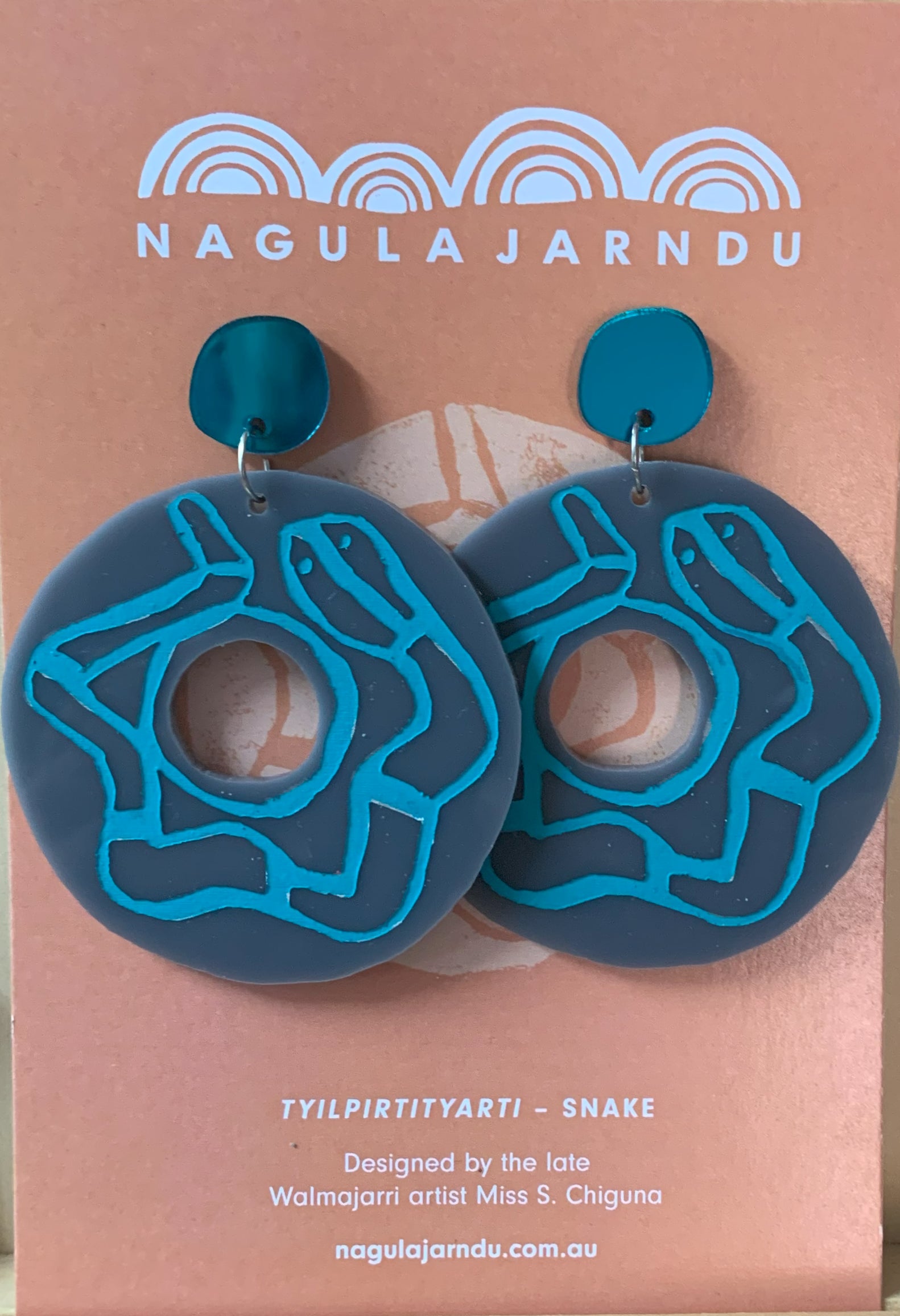 The late Miss Chiguna was a Walmajarri woman from Djugerari in the desert country in the East Kimberley. This design shows the Tyilpirtityarti (snake) from her Country. With her family's permission, we continue to honour the legacy Miss Chiguna left through and celebrate her life through her art.