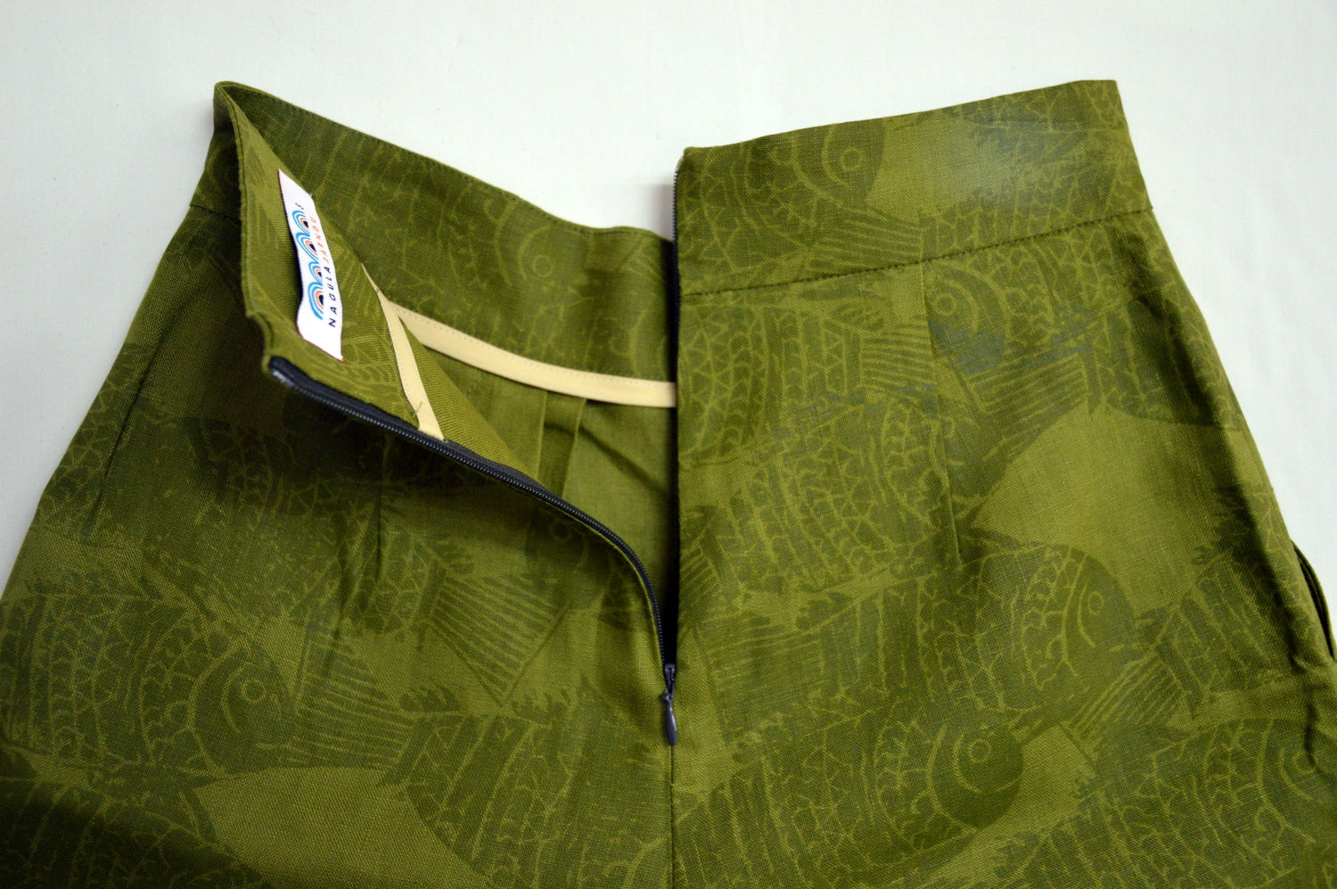 These pants have flat front panel with pleats and a back closure with an invisible zip and lovely deep side pockets.