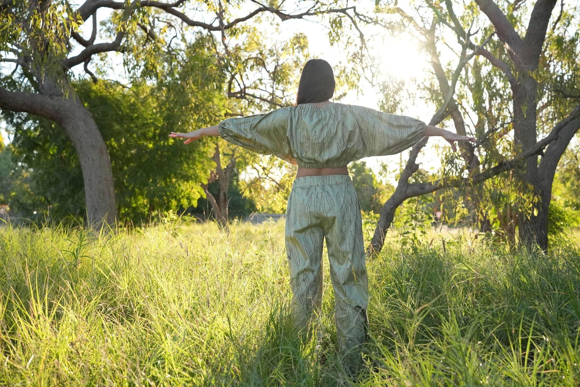 *Please note that the pattern placement will vary slightly on each garment. These are also hand printed with natural dyes. You might notice slight flecks of colour on the garment which are not a flaw but part of the hand woodblock printing process